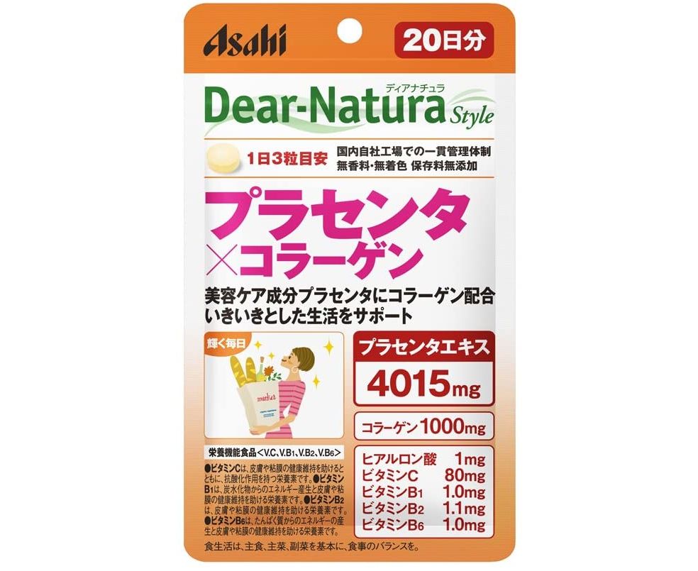 Витаминный комплекс Asahi Dear-Natura для поддержания здоровья и красоты. Содержит плаценту, коллаген, витамины группы B и витамин C. Положительно влияет на состояние кожи, ногтей и волос, и оказывает общеукрепляющее действие.