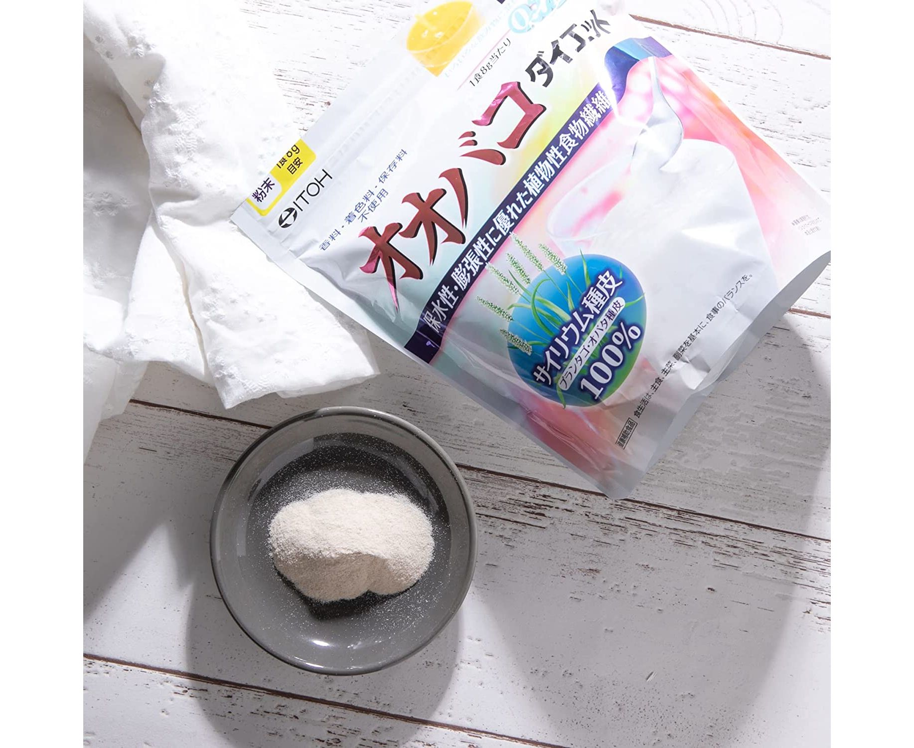 Psyllium Diet – биологически активная добавка к пище от известного японского бренда ITOH. Она помогает очищать организм и нормализует обмен веществ. Является незаменимым продуктом во время прохождения диет. Добавка является источником флавонов, нерастворимых и растворимых пищевых волокон, а также полисахаридов. Комплекс поддерживает молодость и здоровье всего организма в целом.