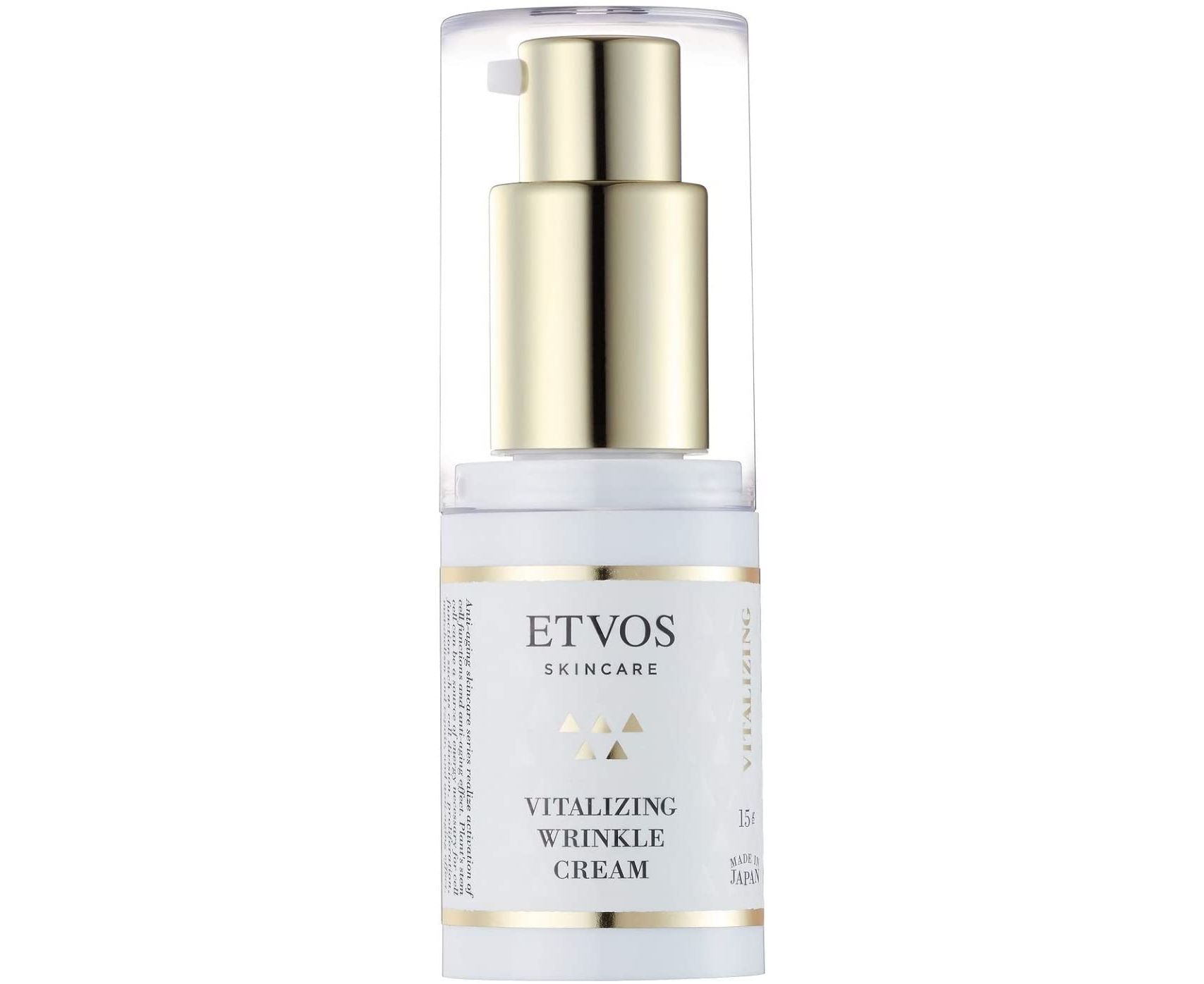Крем для ухода за кожей вокруг глаз и губ ETVOS Vitalizing Wrinkle Cream с гиалуроновой кислотой и экстрактом фермента бактерий альтеромонас, стимулирует выработку естественного коллагена, восстанавливает защитный барьер кожи и предупреждает появление морщин.