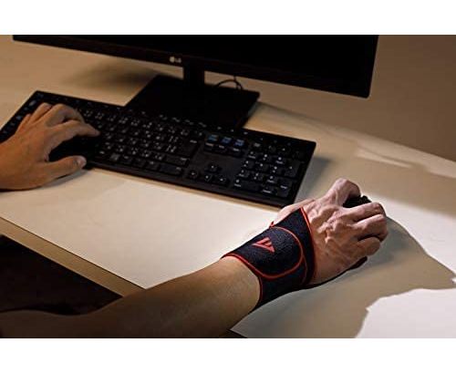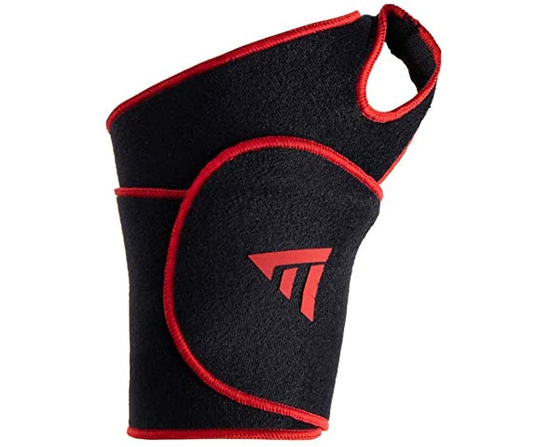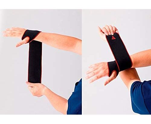 Продеть большой палец в специальное отверстие, обернуть бандаж вокруг запястья и зафиксировать так, чтобы не перетянуть его.