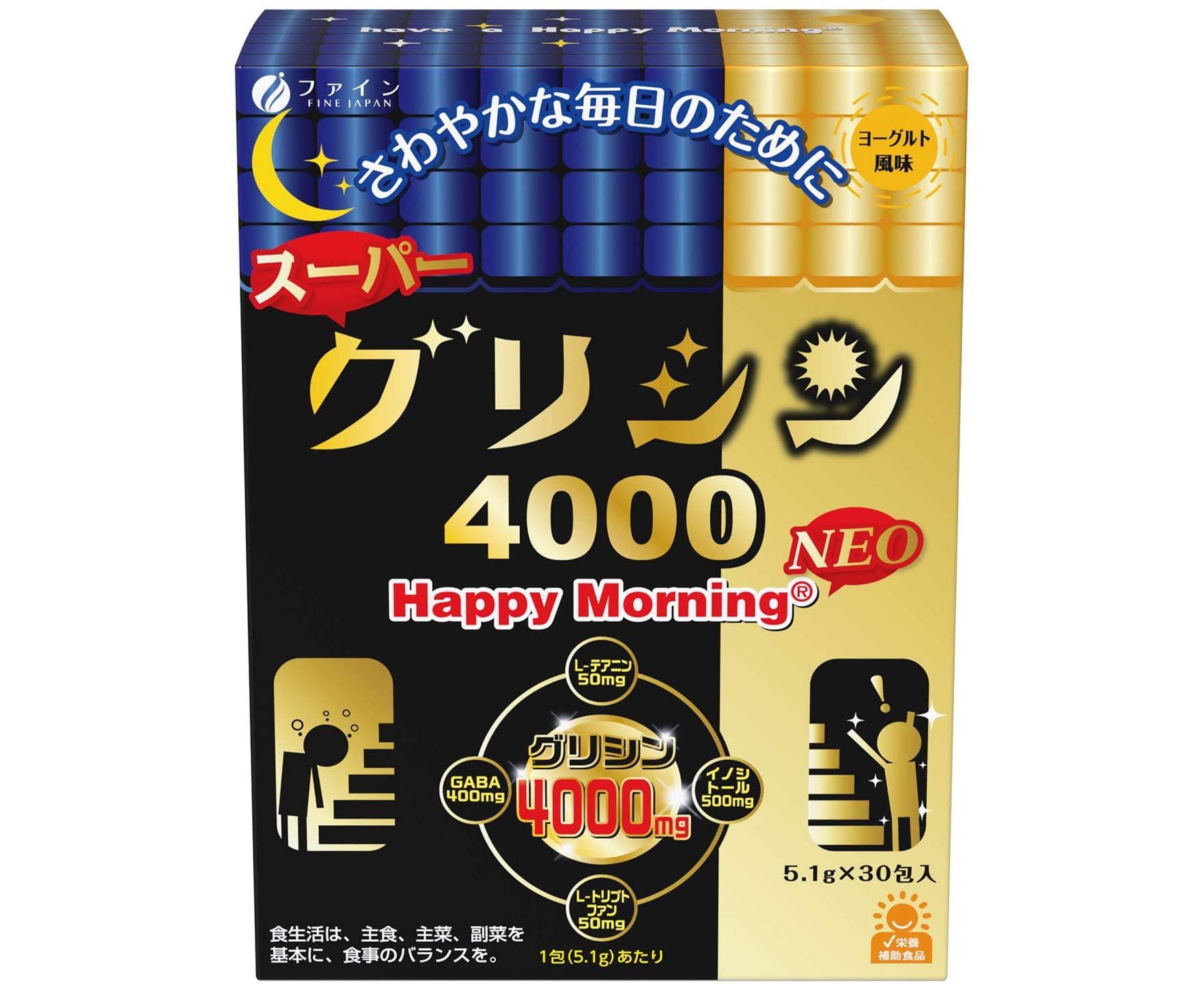 Супер Глицин FINE JAPAN Happy Morning NEO 4000 со вкусом йогурта нормализует режим сна, позволяя организму полноценно отдохнуть и восстановиться к утру, заряжает энергией на целый день. Основной компонент – аминокислота глицин – положительно влияет на работу головного мозга и дарит крепкий и здоровый сон.