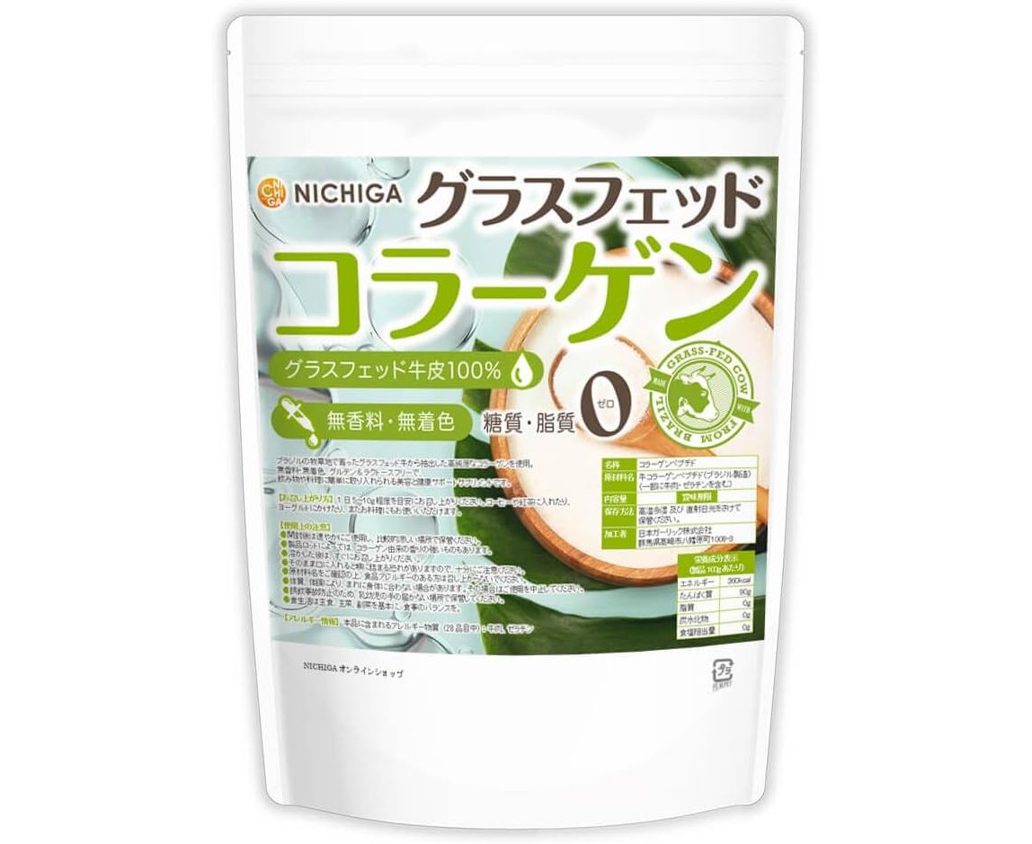 Грассфед коллаген, созданый компанией NICHIGA, является высококачественным гидролизованным коллагеновым пептидом. Данный продукт получают из животных, которые на протяжении всей жизни питались только кормами, содержались на пастбищах и не получали гормонов или антибиотиков. Коллагеновый пептид является идеальной натуральной добавкой для поддержания здоровья кожи, волос, ногтей, суставов и общего тонуса организма. Важнейшие качества продукта: не содержит глютена, лактозы, ароматизаторов и красителей; углеводов - 0, жиров - 0, прекрасно подходит для тех, кто придерживается низкоуглеводного и низкокалорийного питания.