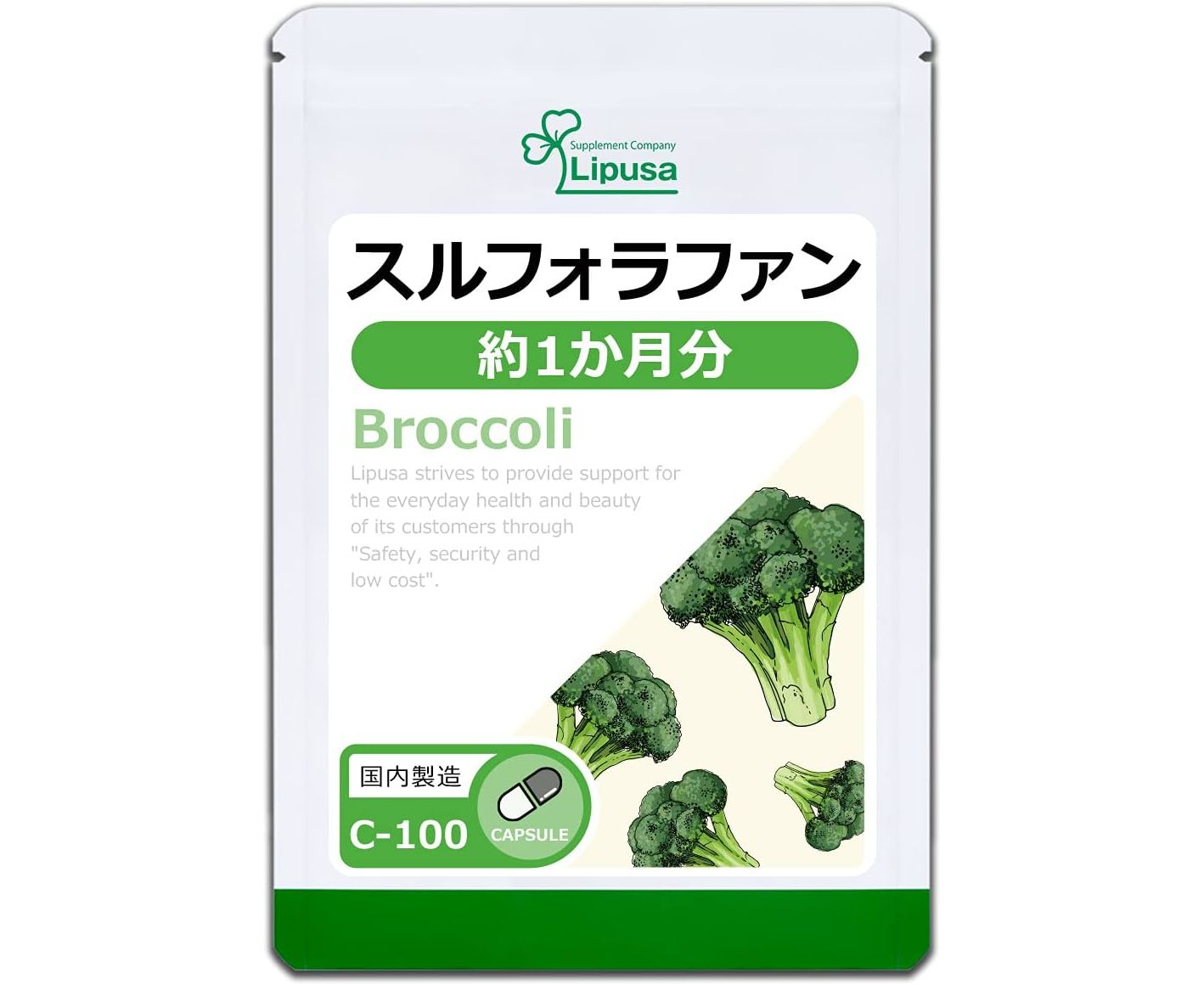 Sulforaphane Broccoli – натуральный комплекс с ростками брокколи от японского бренда Lipusa. Он обладает необходимым количеством витаминов, минералов, а также полифенолов. Сульфорафан - один из главных микроэлементов в брокколи, он участвует в налаживании правильного цикла организма. Регулярный прием БАДа оказывает общеукрепляющее воздействие на организм в целом и продлевает молодость.