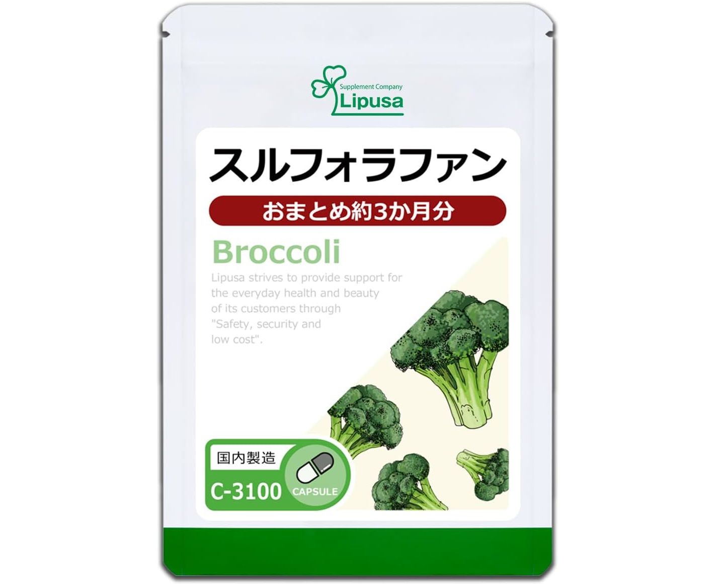 Sulforaphane Broccoli – комплекс с сульфорафаном брокколи для поддержания здоровья от ведущего японского бренда Lipusa. БАД обладает противораковым и антибактериальным эффектами. Сульфорафан получают из ростков брокколи. Именно этот компонент предотвращает развитие рака, а также защищает клетки организма человека и тормозит процесс старения.