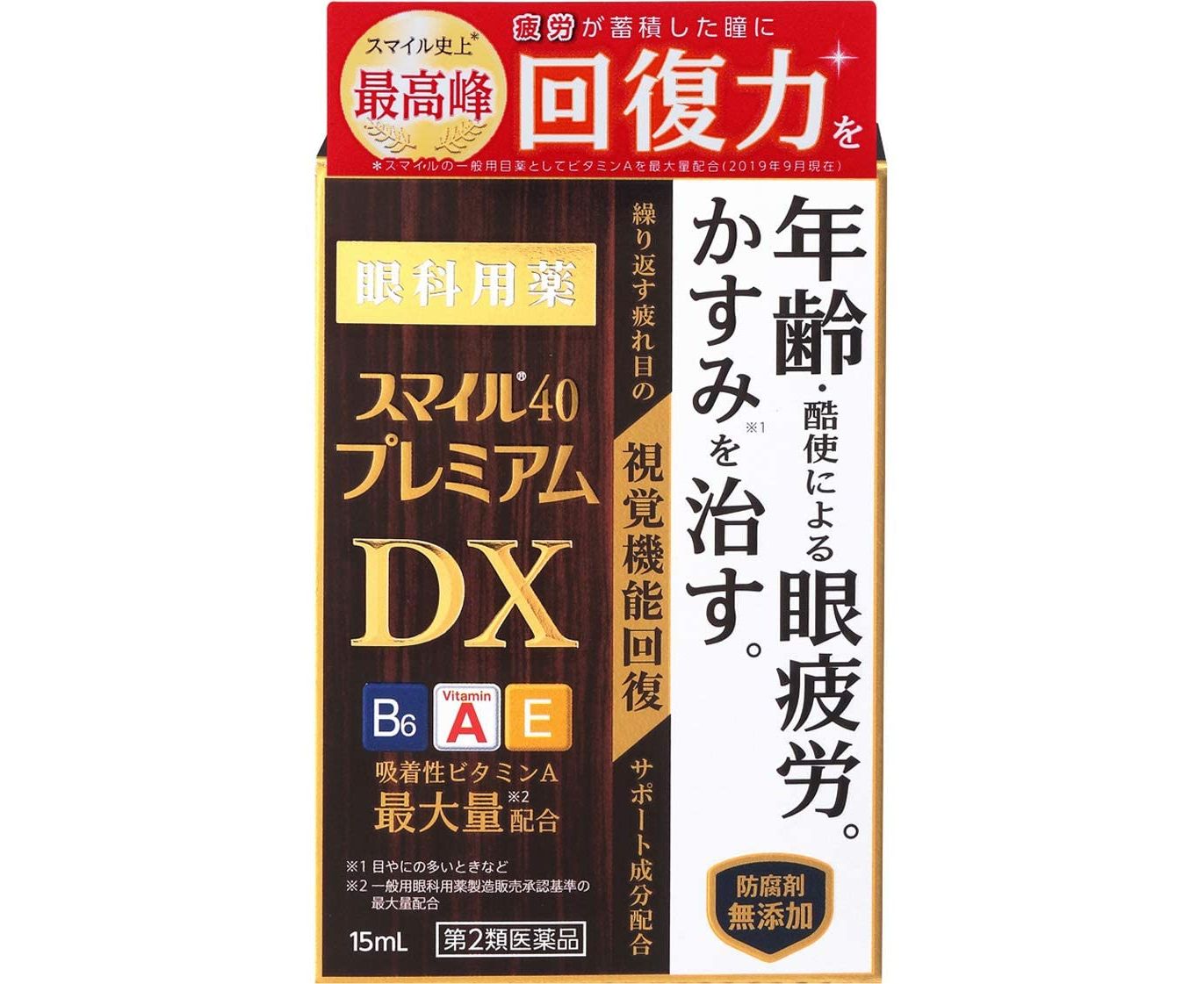 LION Smile 40 Premium DX Капли для глаз с таурином и хондроитином показаны для предотвращения возрастных изменений и поддержания остроты зрения.