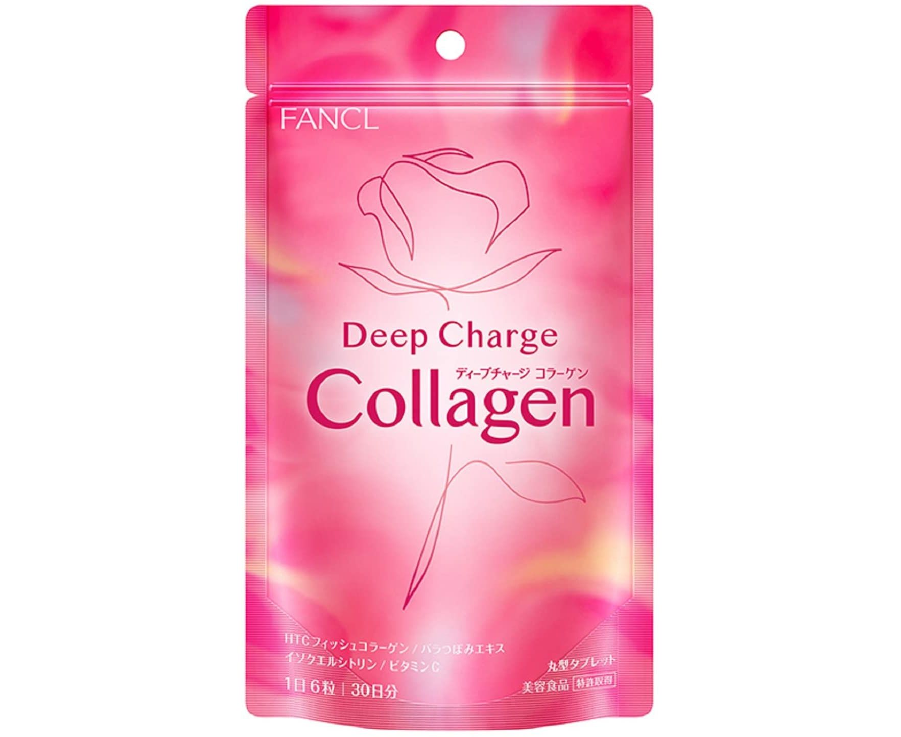 FANCL Deep Charge – обновленная версия низкомолекулярного коллагена в таблетках. Не содержит добавок и консервантов. Легко усваивается и помогает предотвратить возрастные изменения, вызванные недостатком коллагена. Разрешено употреблять беременным и кормящим женщинам.