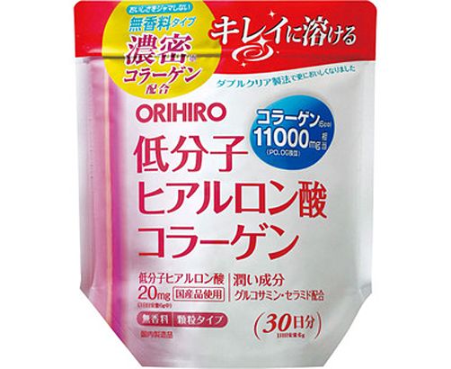 В составе комплекса ORIHIRO Hyaluron Collagen высокое содержание коллагена, низкомолекулярная гиалуроновая кислота, глюкозамин, церамиды, которые поддерживают красоту и здоровье. Результатом его употребления станет здоровая и сияющая кожа, крепкие кости и связки, здоровые волосы и крепкие ногти.