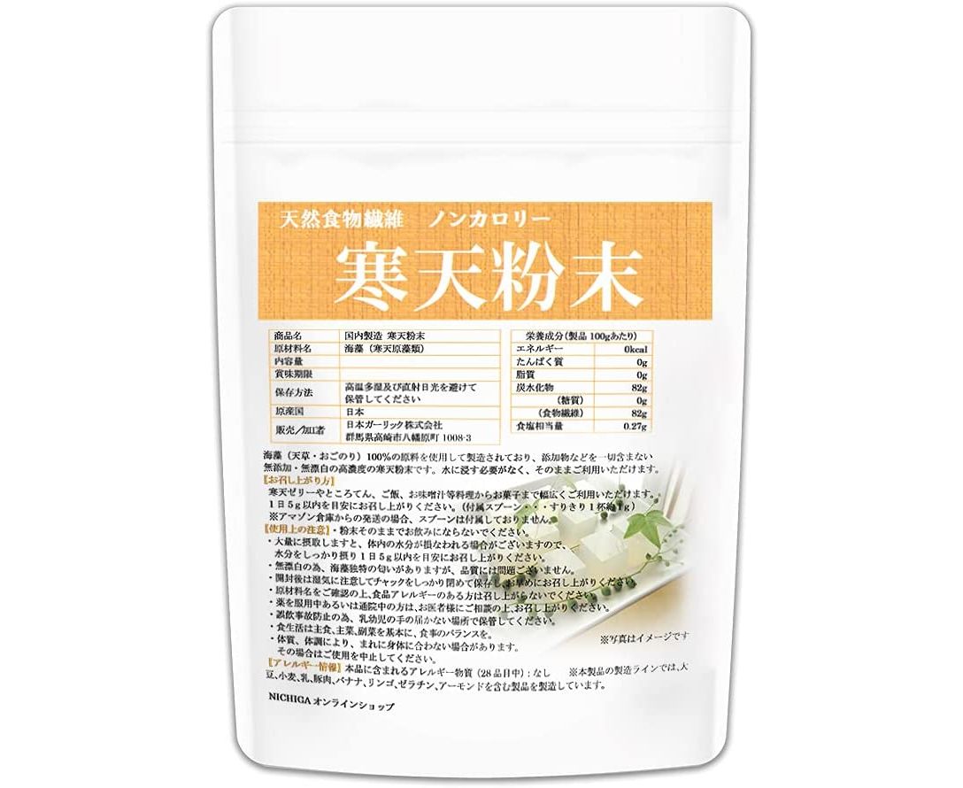 NICHIGA Powder Agar Natural Dietary Fiber – высокоочищенный порошок агар-агара, который получают из водорослей. Он насыщает организм человека диетической клетчаткой, которая в свою очередь положительно влияет на организм. Порошок агар-агара подойдет для приготовления диетических блюд, так как у него нулевая калорийность.