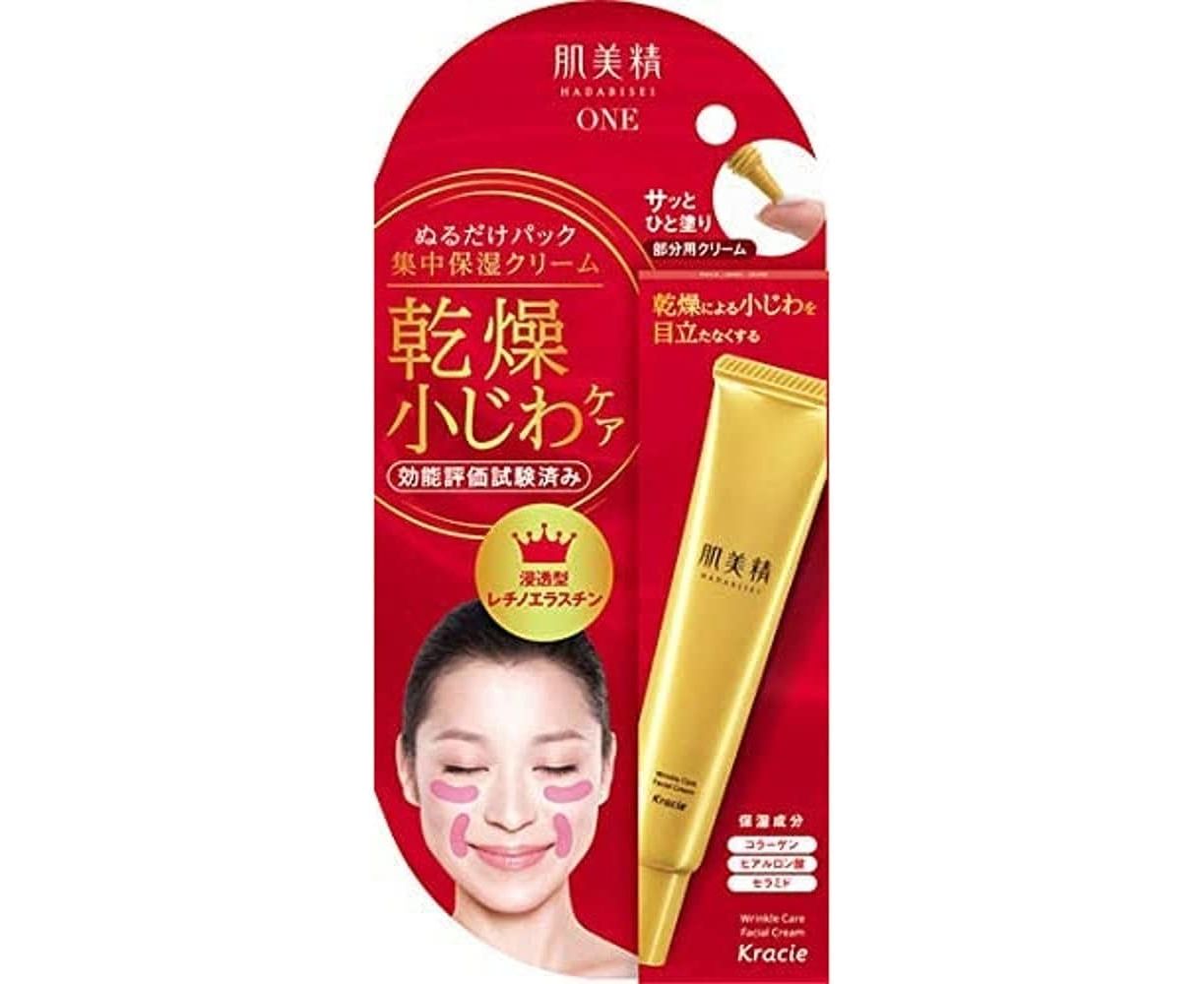 Hadabisei Wrinkle Pack Cream — крем вокруг глаз и губ против мелких морщин от ведущего японского бренда KRACIE. Средство активно питает и увлажняет кожный покров. Подходит для всех возрастов и всех типов кожи. Крем имеет легкую текстуру, быстро впитывается и не оставляет после себя жирных или липких следов. Не содержит отдушек и красителей.
