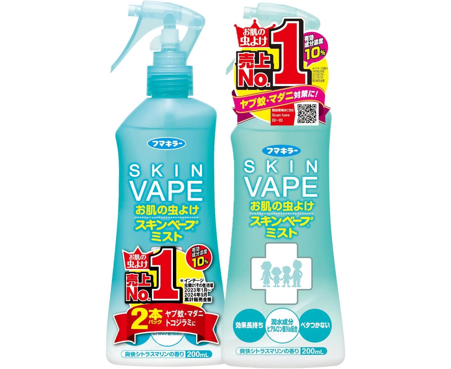 Skin Vape – спрей от комаров и различных насекомых для взрослых и детей от известного японского производителя Fumakilla. Спрей надежно защищает от мошек, слепней, комаров и клопов. Средство имеет водную основу, поэтому оно нежно воздействует на кожный покров, не оставляя жирного или липкого ощущения. В его состав не входят аллергены и вредные добавки. Спрей имеет приятный цитрусово-морской аромат. Одно распыление отпугивает насекомых примерно на 4 часа. Подходит для нанесения на нежную детскую кожу с 6 месяцев.