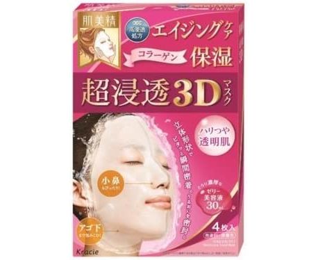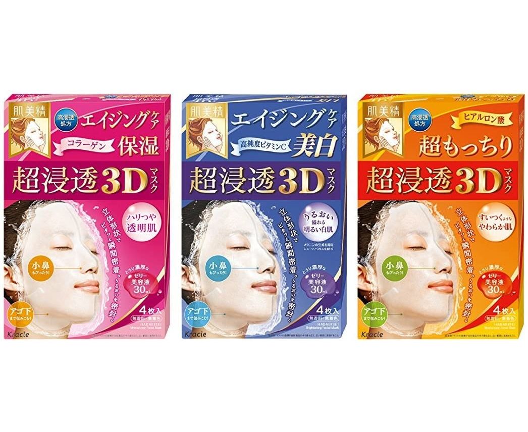 Тканевые маски с гиалуроновой кислотой, коллагеном и витамином С для питания кожи Kracie Moisturizing Facial 3D
