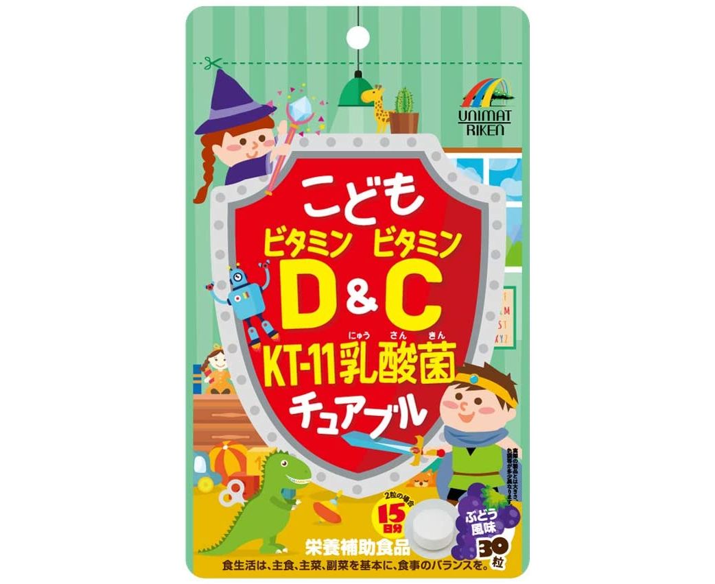 Детский жевательный комплекс витаминов D и C с кисломолочными бактериями UNIMAT RIKEN Junior Vitamin D & C