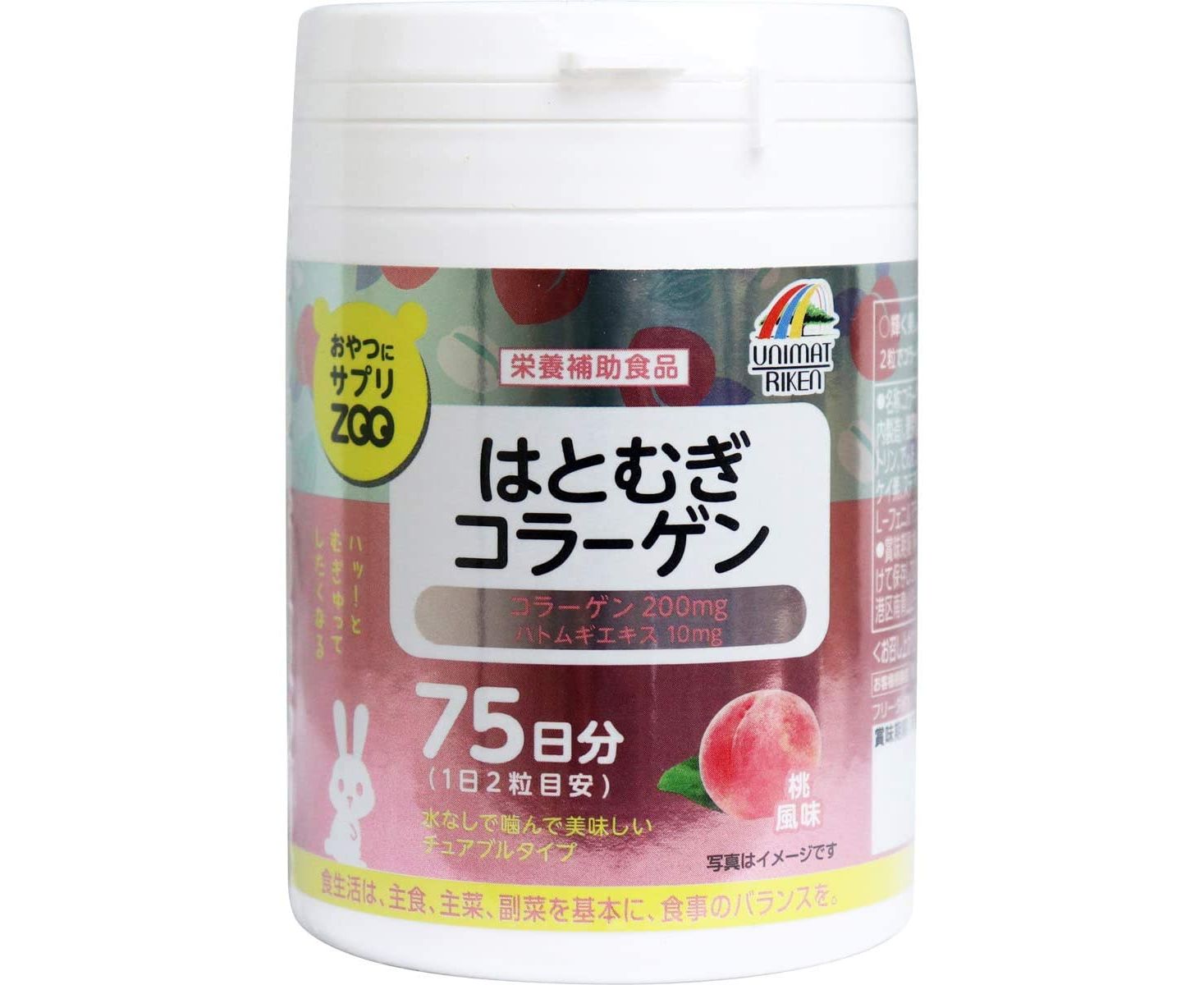 Комплекс жевательных витаминов для здоровья и молодости кожи UNIMAT RIKEN ZOO Hatomugi Collagen