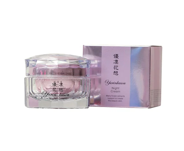 Yurin Kasou Beauty Repair Night Cream — ночной крем от японского бренда HANAJIRUSHI, который интенсивно увлажняет кожу и делает ее упругой. В состав средства входит 11 цветочных экстрактов, которые предотвращает потерю влаги, а также активно работают с кожным рельефом. Крем отлично подойдет для кожи любого типа, без ограничений по возрасту. Имеет довольно плотную текстуру и быстро впитывается, не оставляет после себя липких и жирных следов на коже.