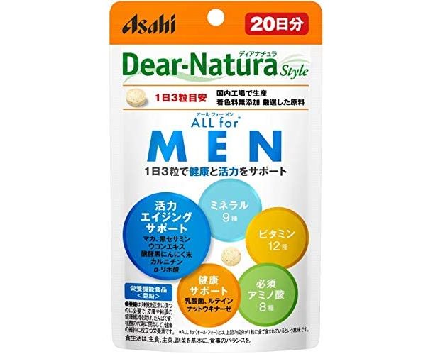 Dear-Natura Style ALL For MEN – витаминно-минеральный комплекс для мужчин от японского бренда Asahi. В состав БАДа входят 8 аминокислот, 12 витаминов, 9 минералов, а также натуральные растительные экстракты и бактерии, которые в целом поддерживают здоровье, мужскую силу, продлевают молодость и увеличивают сопротивляемость организма стрессу.
