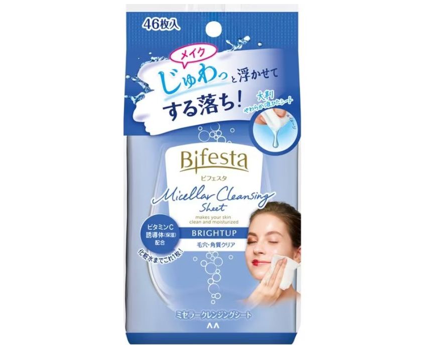 Micellar cleansing sheets BRIGHT UP – влажные салфетки с витамином С для удаления макияжа от японского бренда Mandom линия BIFESTA. Они бережно удаляют с кожи лица и области глаз самый водостойкий макияж, не вызывая при этом совершенно никакого дискомфорта или раздражения. Средство за мгновение справится с любым видом туши, подводки, а также карандаша для глаз. Кроме этого пропитка салфеток увлажняет, а также ухаживает за кожей.