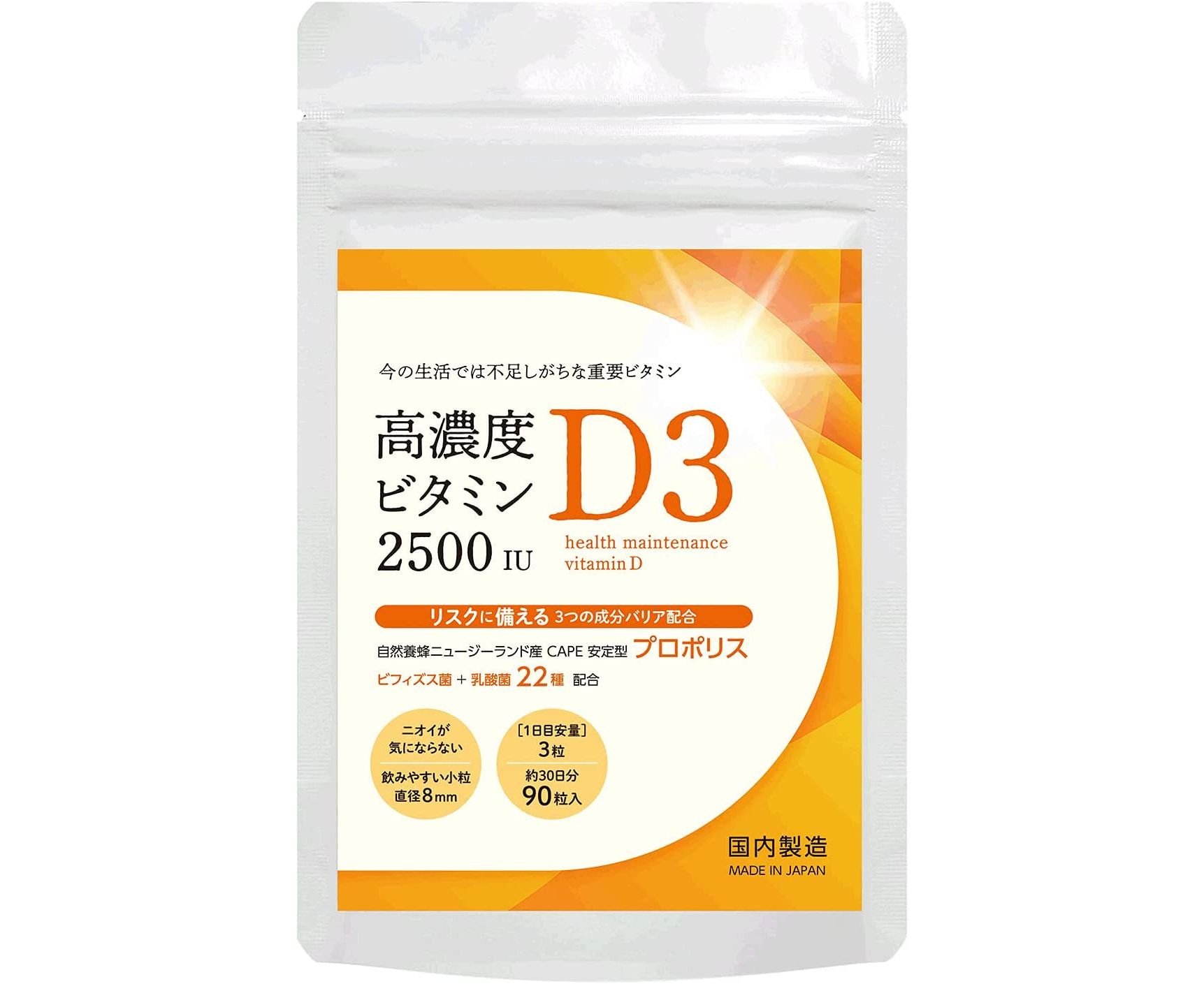 V.D3 2500 IU+Propolis+Bifidobacteria – комплекс высококонцентрированного витамина D3 с прополисом и бифидобактериями от ведущего японского производителя Minori Grain. Регулярное употребление комплекса повысит устойчивость организма к различным простудным заболеваниям, улучшит работу иммунной системы, а также обеспечит нормальный рост и развитие костей.