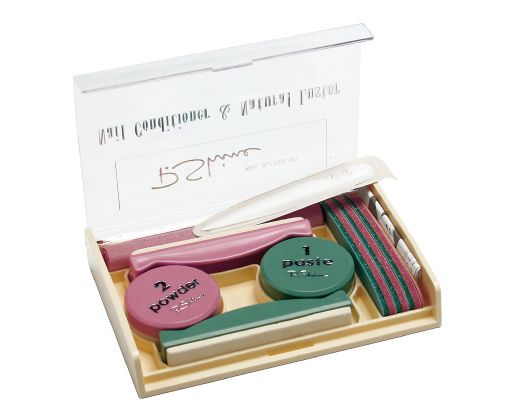 В набор входят: баф замшевый зеленый для пасты, паста для питания ногтей, баф замшевый розовый для пудры, пудра для глянцевания ногтей, подушка-шлифовщик 3 шт., замшевая салфетка, пушер, а также интеллектуальная мини-пилка.